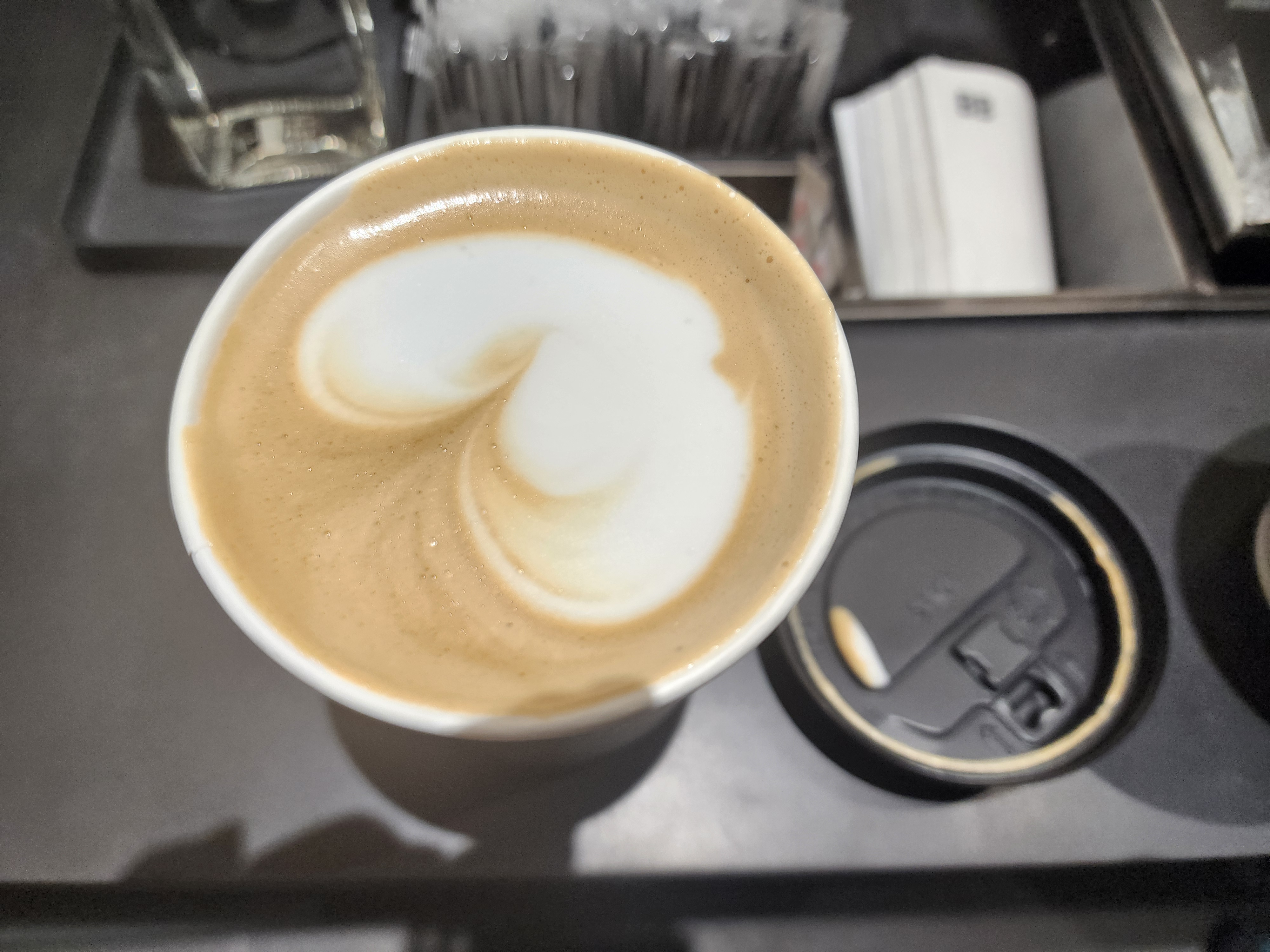 이렇게 테이크아웃이면 우유 스팀을 엉망으로 치는 곳이 많은데, 이곳 우유의 실키함이 살아있다.
