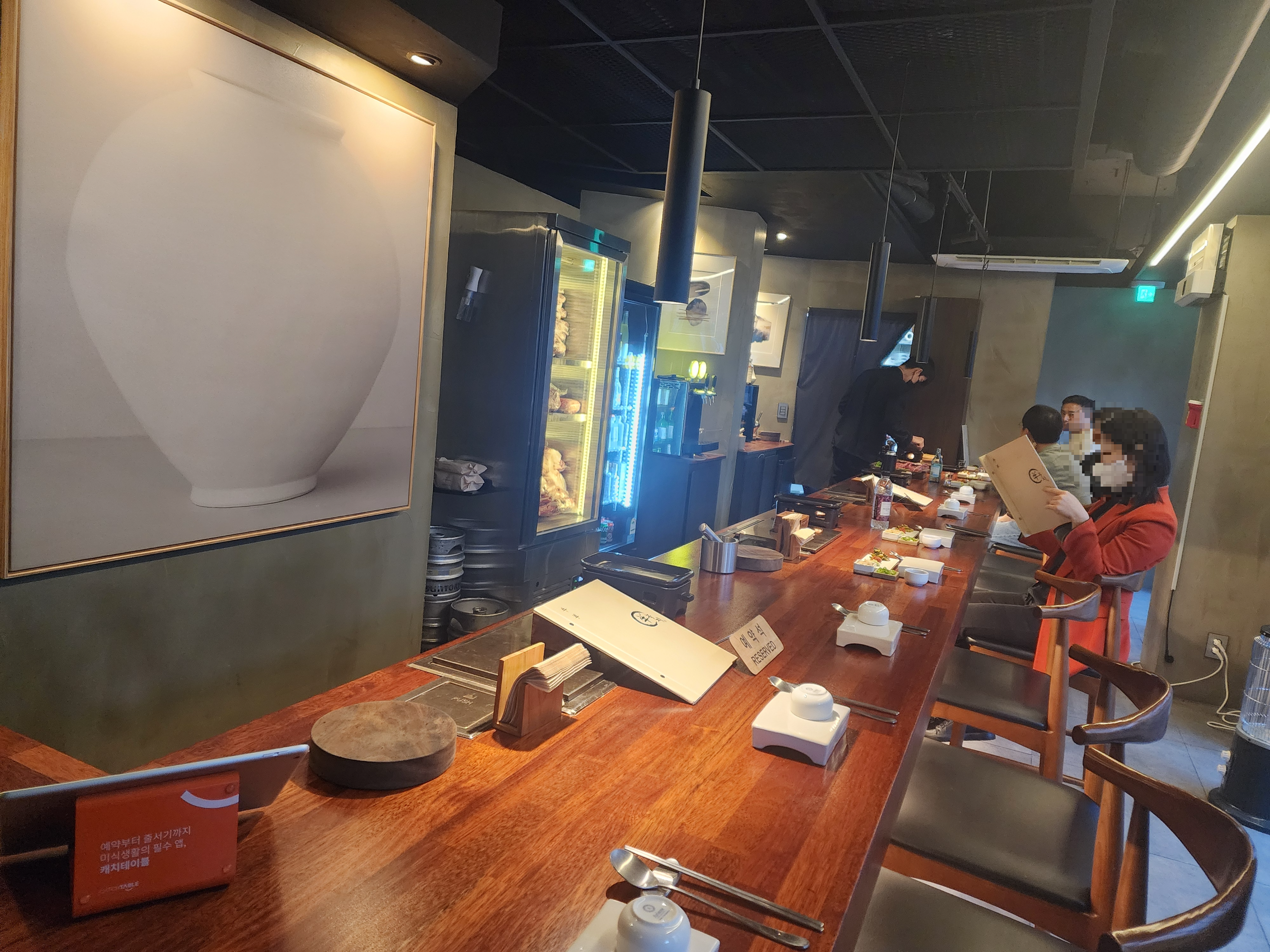 바(bar) 형식의 테이블이 약간 부담스러웠지만(전형적인 I인 나), 그래도 바로 앞에서 고기를 구워주시는 모습을 보면 굉장히 설레고 흐뭇할 거 같았다.