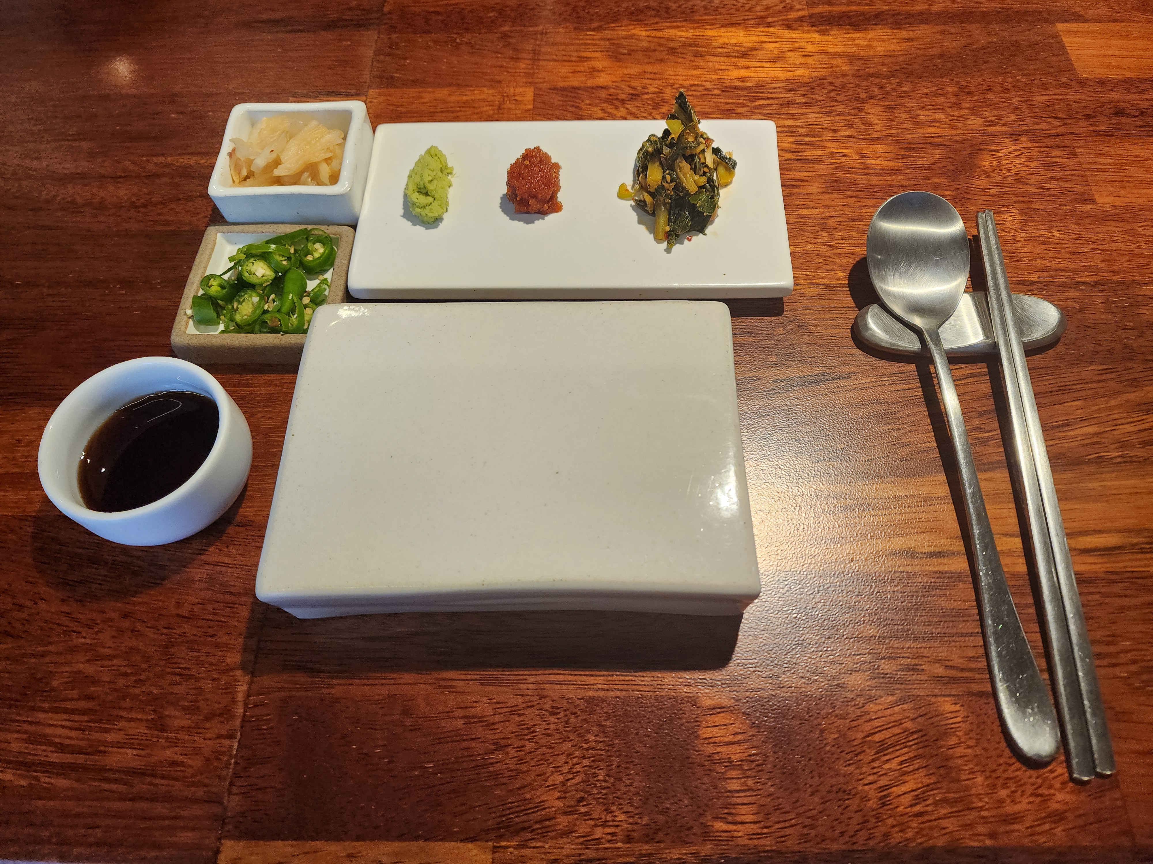 정갈하게 양고기를 곁들여 먹을 수 있는 상차림이 깔끔하니 보기 좋다.