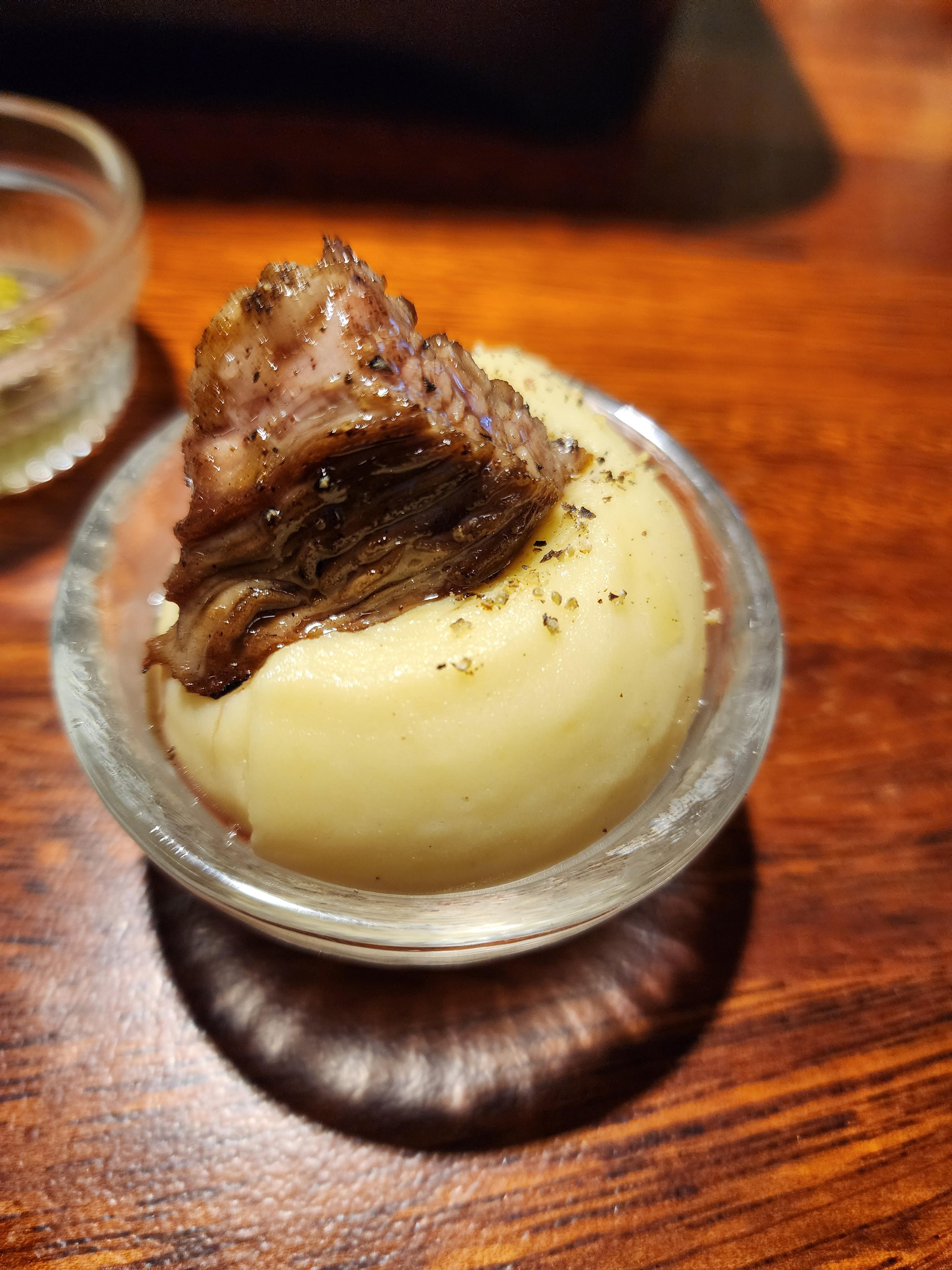 부드러운 매쉬포테이토와 양고기를 함께 먹으면 부드러우면서도 쫄깃한 식감이 굉장히 잘 어울리고 맛까지도 풍부하게 시너지 효과가 있다.