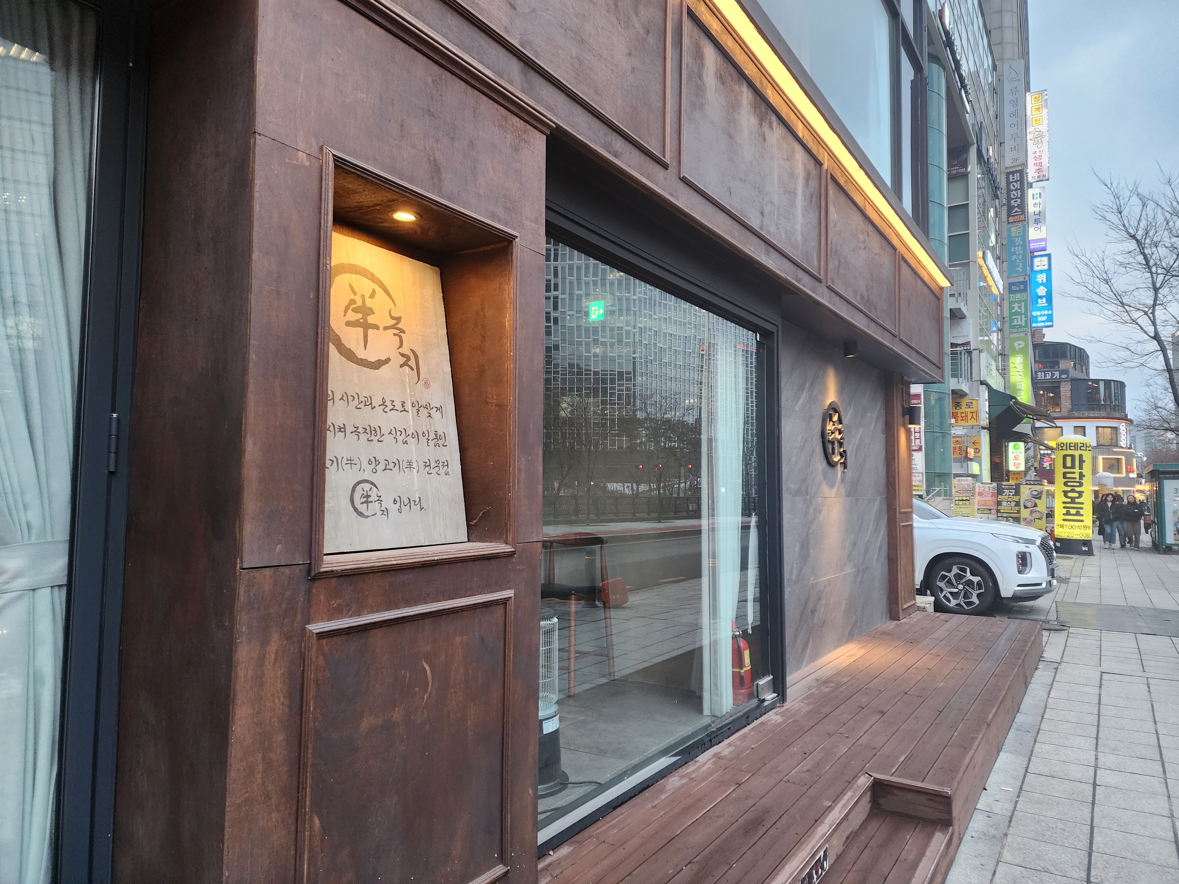내가 좋아하는 양고기 전문점이라는 설명이 멋진 판때기에 써있다.